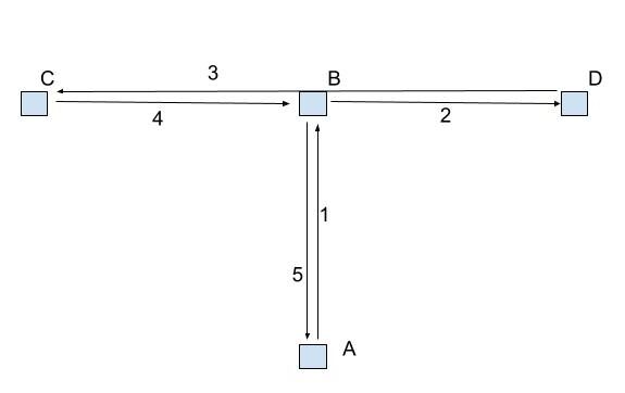 • Dril 2: “T-běh”. Sportovec vybíhá od terčíku A k terčíku B, odtud běží bokem (nízký cval stranou) k terčíku D, kterého se dotkne pravou rukou a běží bokem co nejrychleji k terčíku C, kterého se dotkne levou rukou. Od C běží bokem zpět k B a následně pozadu k výchozí pozici (terčík A).